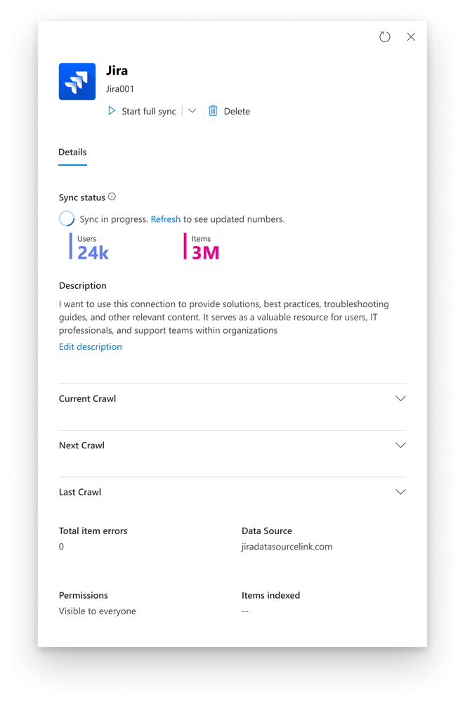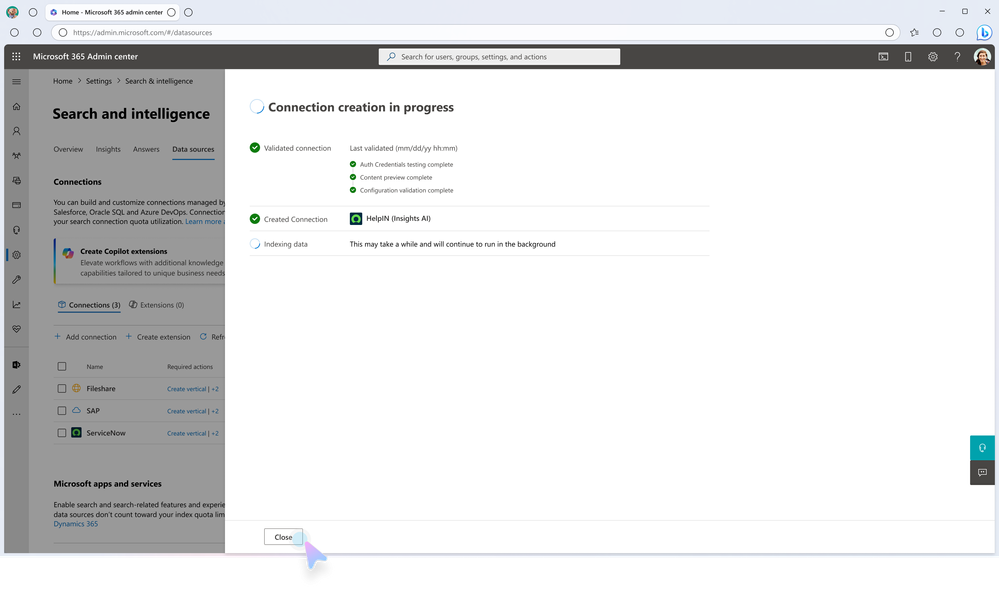 Pre-Publish Validation - Before publishing, the admin center automatically runs targeted checks for issues like missing permissions, incorrect endpoints, schema mismatches, or network constraints. Admins see exactly what to fix — resolving items in context before a crawl starts.