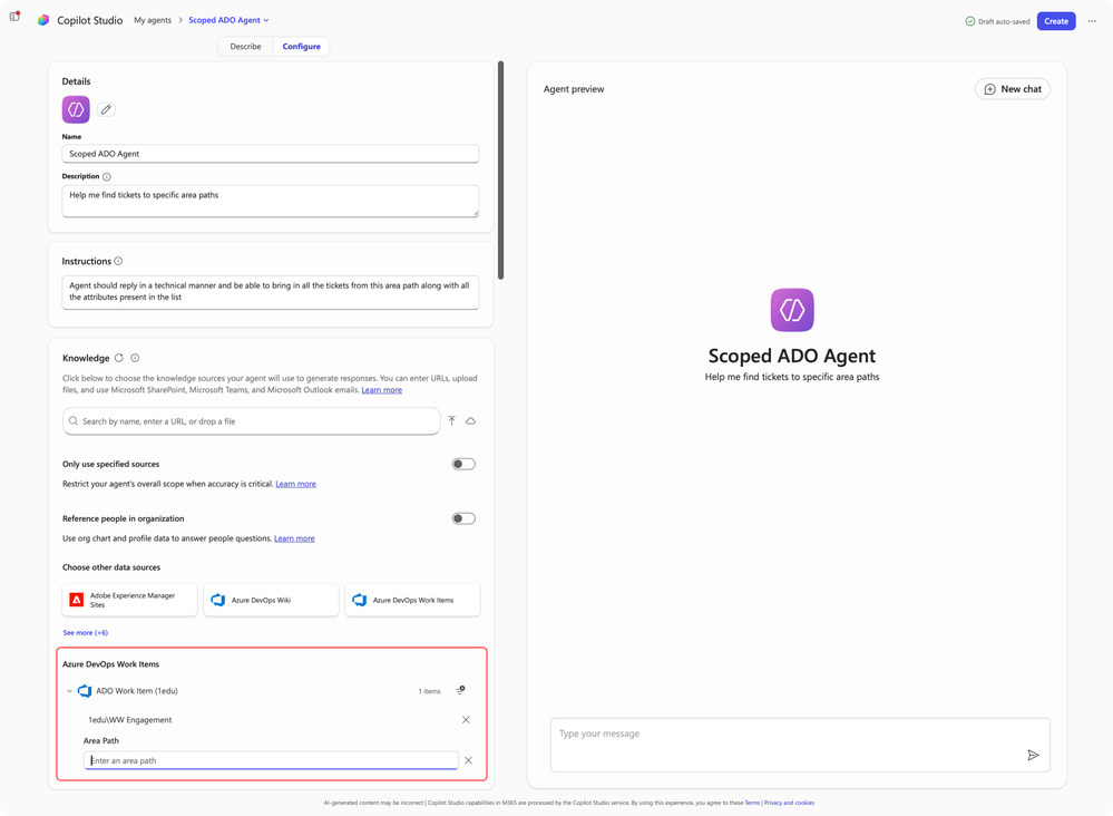 Copilot agents with third-party connector filters seamlessly integrate with platforms like Jira, Confluence, and ServiceNow to deliver organization-specific insights. With Scoped Knowledge, creators can now restrict each agent to defined segments of connected data — ensuring responses are focused, relevant, and trustworthy. Instead of searching across an entire platform, agents can be scoped to a single Jira project, Confluence space, or ServiceNow Knowledge Base for precise, context-aware results.