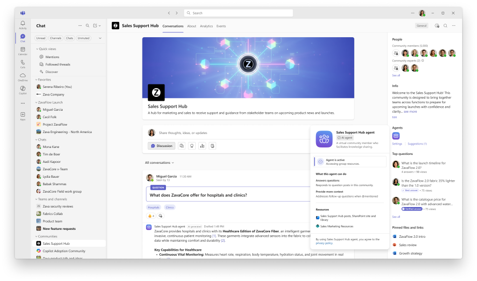 Communities in Microsoft Teams bring community conversations and leadership engagement to a user’s existing Teams collaboration, so they can discover and participate in communities directly within Teams without switching apps. Now agents in communities are also available in Teams. The agent helps turn community conversations into shared organizational knowledge by drafting suggested responses to unanswered questions using existing discussions and specified SharePoint sites. This feature rolled out to Public Preview in February and is rolling out worldwide in April.