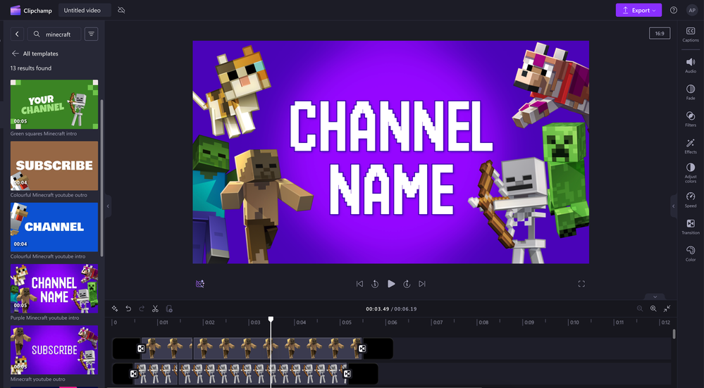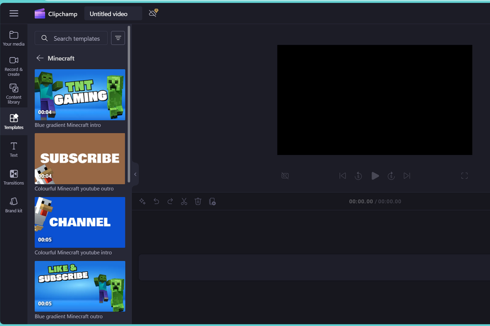 Clipchamp now features templates and other content from popular games like Minecraft