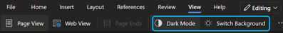 - If you have your operating system or browser set to Dark Mode, Word for the web will use Dark Mode by default. To turn it off, select View > Dark Mode, or change the background color to white using the Switch Background button.