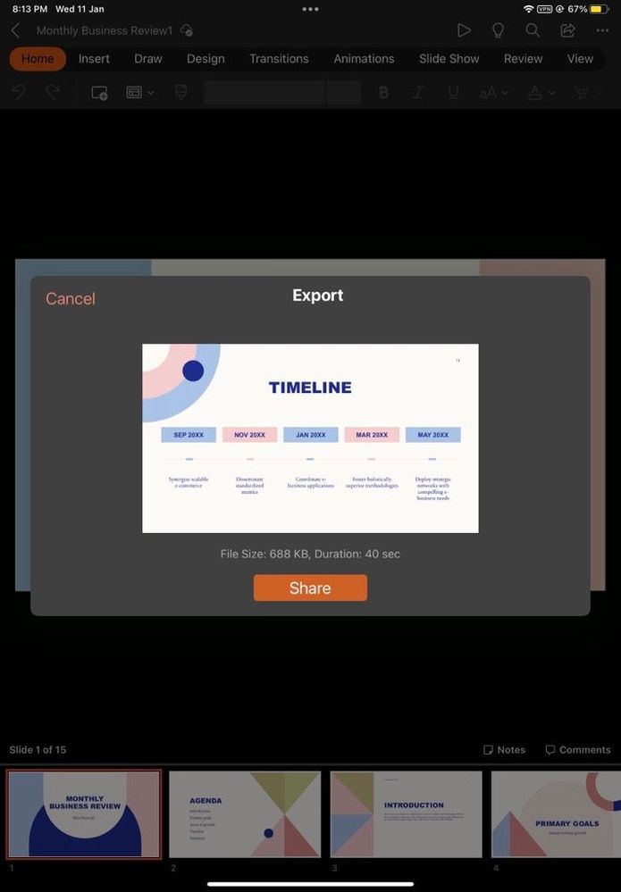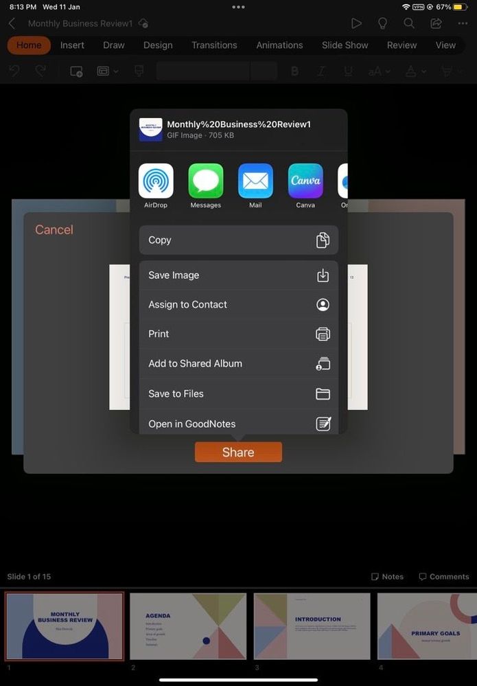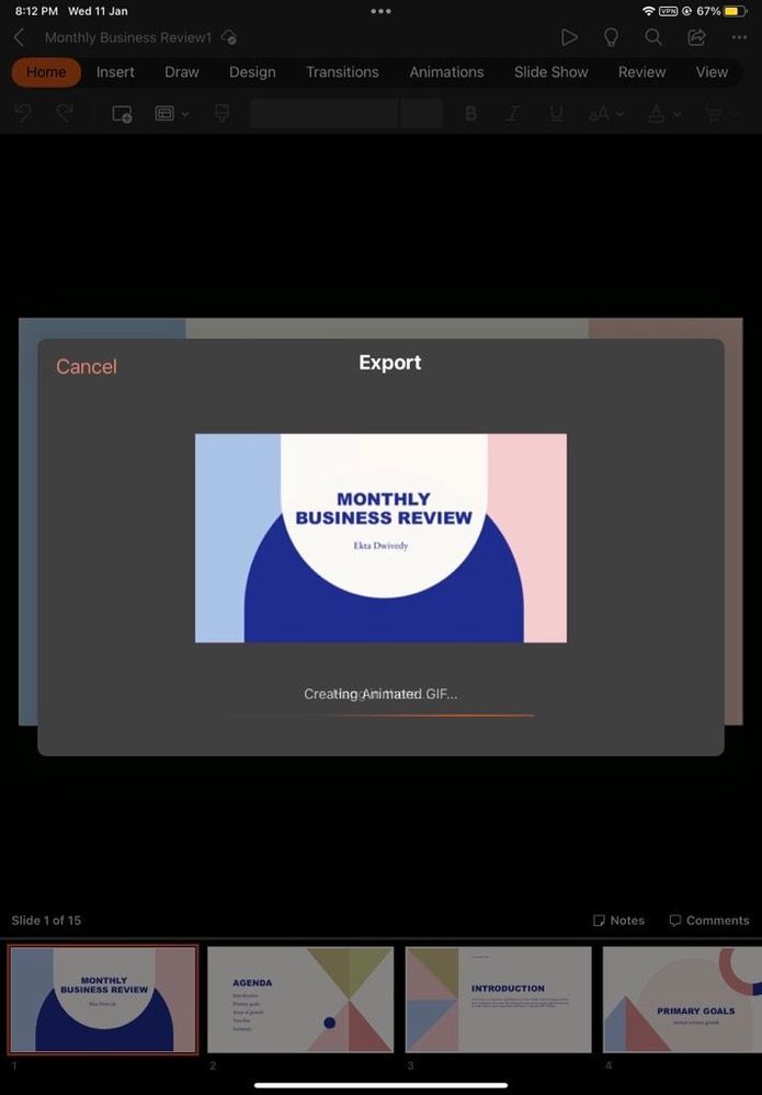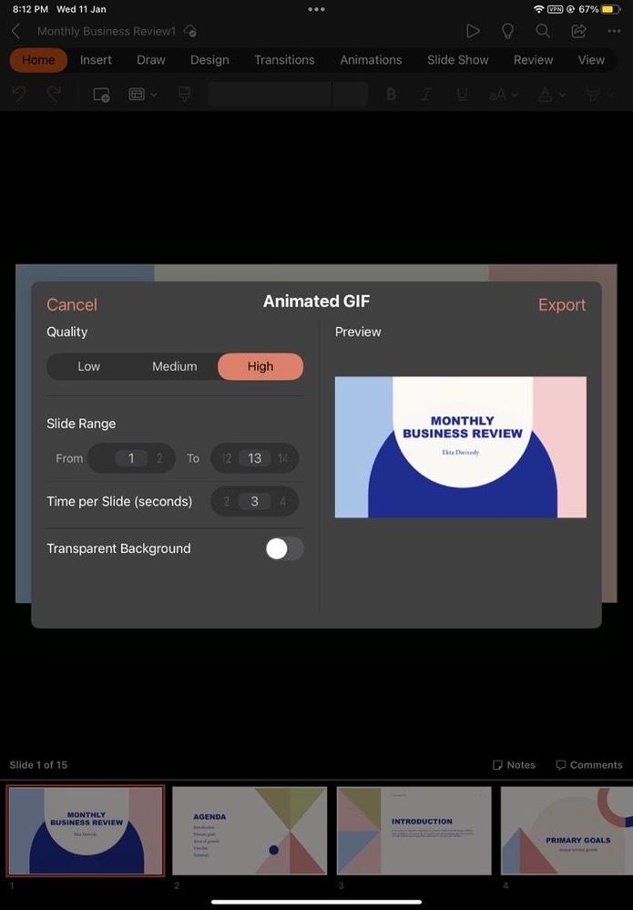 Export slides as an animated GIF in PowerPoint for iPad