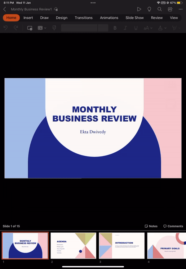 If you have any feedback or suggestions, tap your profile photo in PowerPoint on iPad, then tap Help & Feedback, and then tap Tell Us What You Like, or Tell Us What Can Be Better.