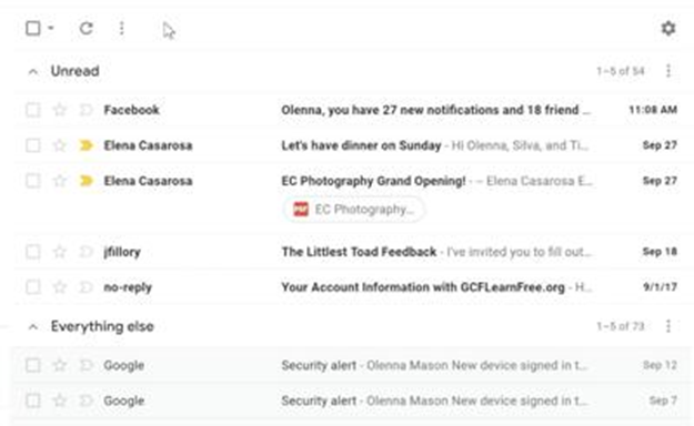 The image shows a user's notification list on a device, with various messages from friends and events, including a Facebook friend request, a dinner invitation, and a photography event. |