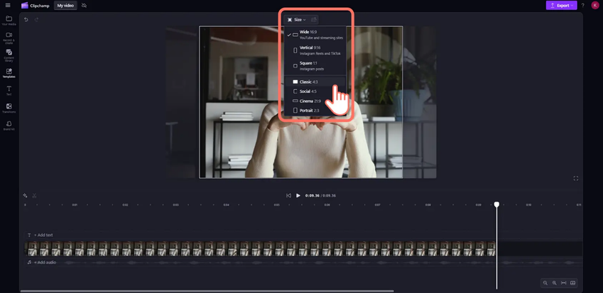 Clipchamp’s aspect ratio presets make it easy to resize your video for different formats without starting over. You can switch between common layouts and adjust framing as needed, helping you reuse the same content across multiple destinations.