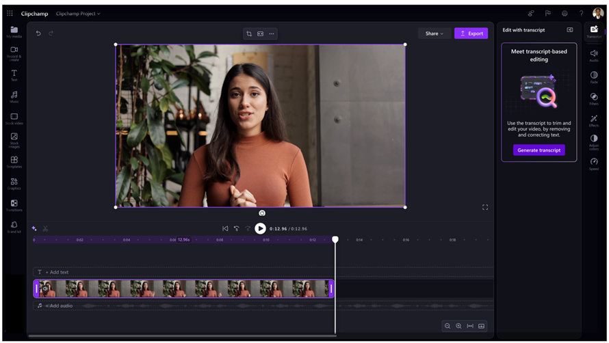 With automatic captions, Clipchamp can generate captions for your video in just a few steps. This is a great way to make content more inclusive, improve comprehension in noisy environments, and reduce the time spent manually transcribing audio.