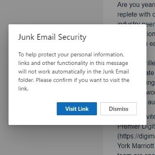 Warning before visiting links in the Junk folder