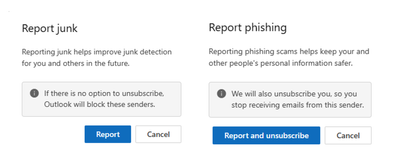 Report junk and Report phishing alerts