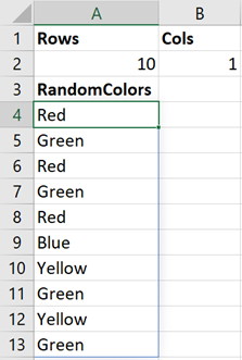 Let’s say you want to generate a random list of colors, using MAKEARRAY in combination with CHOOSE and RANDBETWEEN. The final solution looks like this: