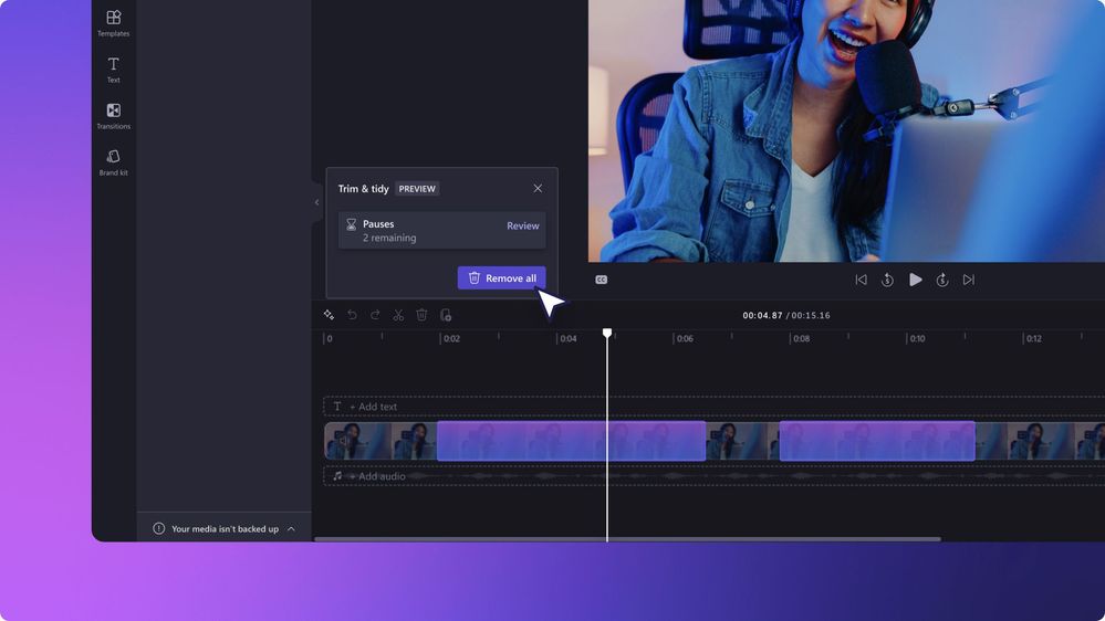 This new AI feature in Clipchamp can remove long boring silences in a snap. Silence removal allows you to find, trim and delete the silent parts of audio or video files. This is perfect for anyone who wants to tidy up their podcasts, meetings, interview videos and voiceovers, without having to spend hours tediously editing out silences bit by bit.