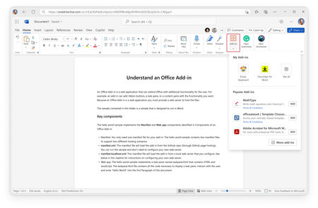 We’re excited to announce that a more easy-to-access entry point for Office Add-ins is now available online. By accessing the new entry point in Word, Excel, and PowerPoint, you’ll have an upgraded e...
