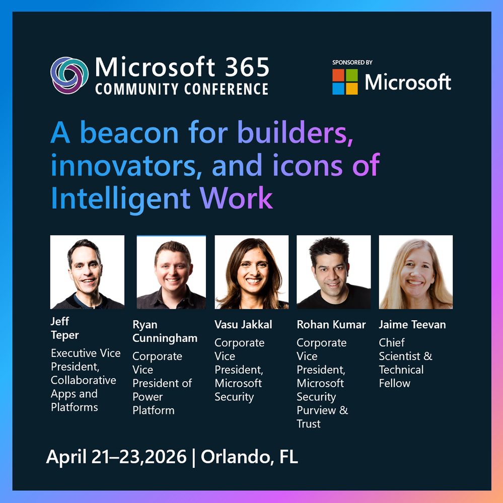 The Microsoft 365 Community Conference returns to Orlando this April, bringing together thousands of builders, innovators, creators, communicators, admins, architects, MVPs, and product makers for three unforgettable days of learning and community.