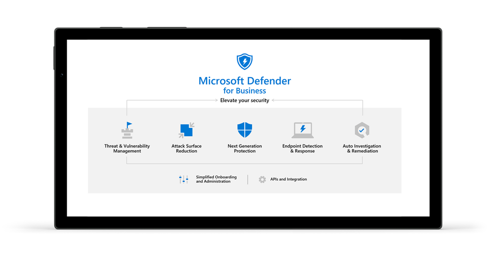 - APIs and integration - Automate workflows and integrate security data into your existing security platforms and reporting tools. For example, you can pull detections from Defender for Business into your security information and event management tool.