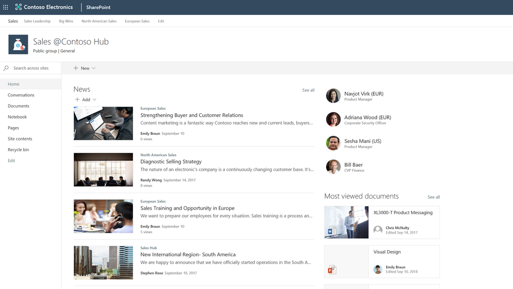 SharePoint Hub Site experienceSharePoint Hub Site experience