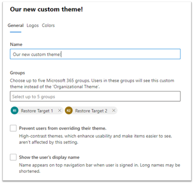 We are so excited to announce an enhanced theming experience for tenants. We have started rolling out the improvements and will be generally available by late May 2021. Through the Microsoft 365 admin center, start playing around with colors and logos and assign custom themes to different Microsoft 365 groups in your organization! The organizational theme is what appears in the top navigation bar for people in your organization.