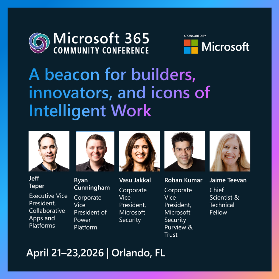 You’ll find all this and more at Microsoft 365 Community Conference, April 21–23 in Orlando.