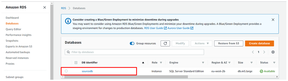 - Prepare and configure the Source RDS SQL Server Instance following the documentation for creating a Microsoft SQL Server DB instance and connecting to it