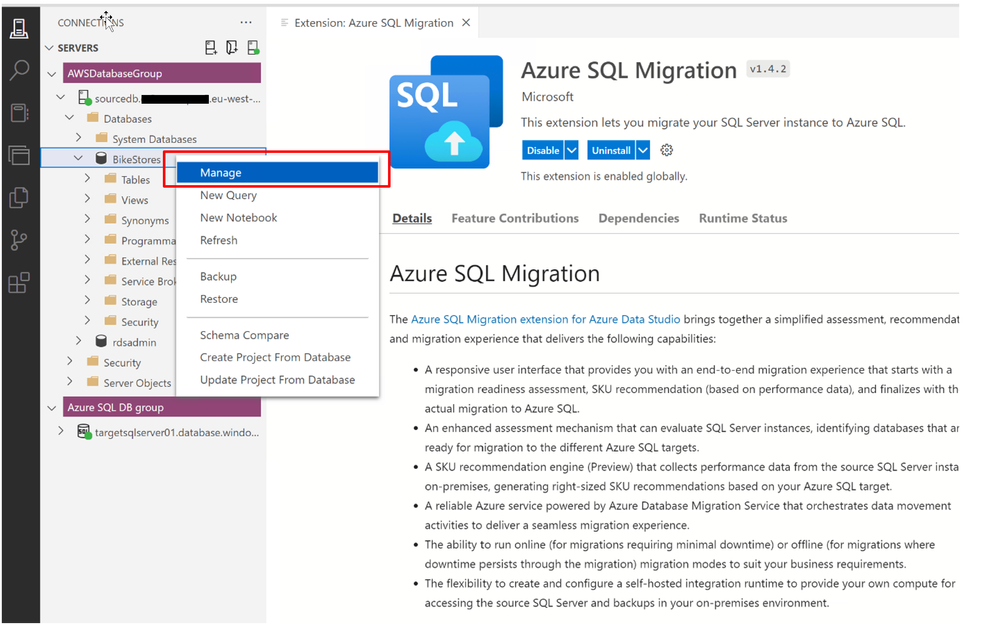 In this blog post, I will demonstrate how to use the Azure Migration extension of Azure Data Studio to migrate AWS RDS SQL Server database to Azure SQL Database offline.