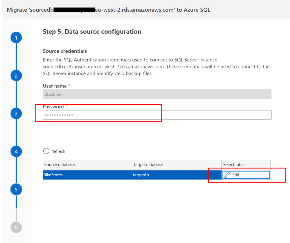 - Under Source credentials, enter the source SQL Server credentials.