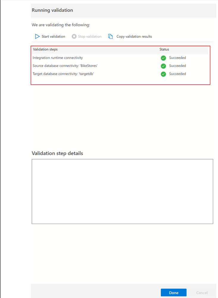 b. After all, steps are successfully validated, select Done.