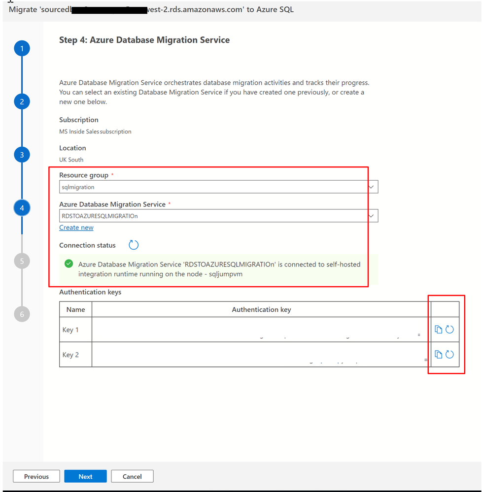 - Select Next to continue your database migration in the wizard.