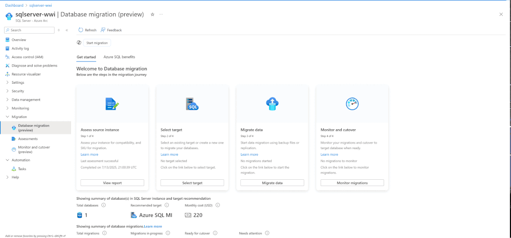 We’re excited to announce General Availability of the SQL Server migration in Azure Arc. This experience is designed to simplify and accelerate SQL Server migration journey to Azure SQL Managed Instance offering a unified, end-to-end workflow directly within the Azure portal.