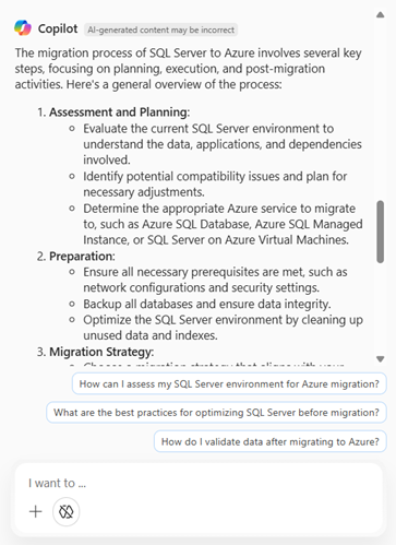 • Microsoft Copilot is integrated to assist you at select points during the migration journey.