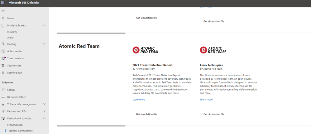 Evaluation Lab users can now use Atomic Red Team simulations to evaluate Microsoft Defender for Endpoint’s detection capabilities against both Windows and Linux threats. The simulations are provided as script files, so that security teams can choose to run them in the Evaluation lab or any other testing environment of their choice.