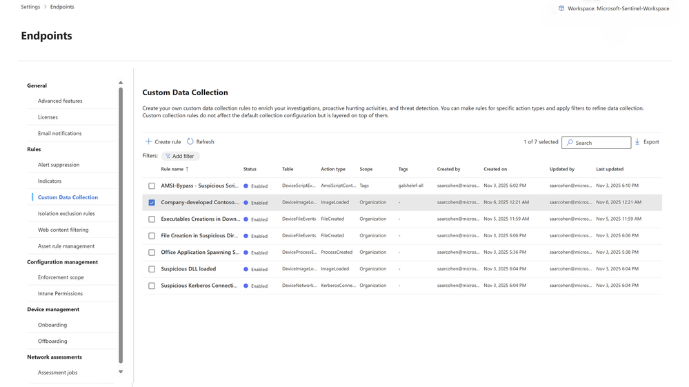 - Custom data collection: Defender is now the only endpoint protection solution that allows data-hungry security teams to meet specific telemetry needs by optimizing their data collection right within the Defender portal, without the need to rely on fragmented and siloed solutions.