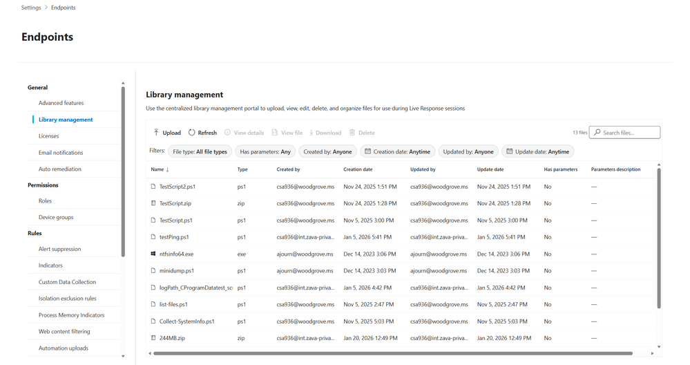 The new library management experience in Defender brings powerful enhancements to how security teams manage scripts and files used in live response. With this centralized and streamlined interface, analysts no longer need to wait for an active session to organize their investigation tools everything can now be managed proactively, directly from the portal. This enhancement in Defender’s live response tooling improves operational readiness, enhances visibility and control, and helps streamline response workflows across SOC teams.