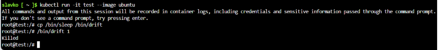 To test drift prevention, deploy a container and introduce a drift in the running container. The drift will be detected by the sensor and prevents drift, and alert is generated as shown in the screenshot below: