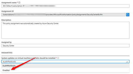 PolicyAssignmentId : /subscriptions/45dc14b0-b4dd-4750-b227-7417c175928d/providers/Microsoft.Authorization/policyAssignments/SecurityCenterBuiltIn