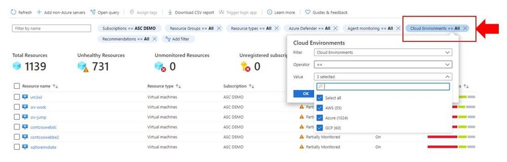 You can also quickly identify resources on each cloud provider by using the Inventory dashboard, by using the Cloud Environment filter as shown below: