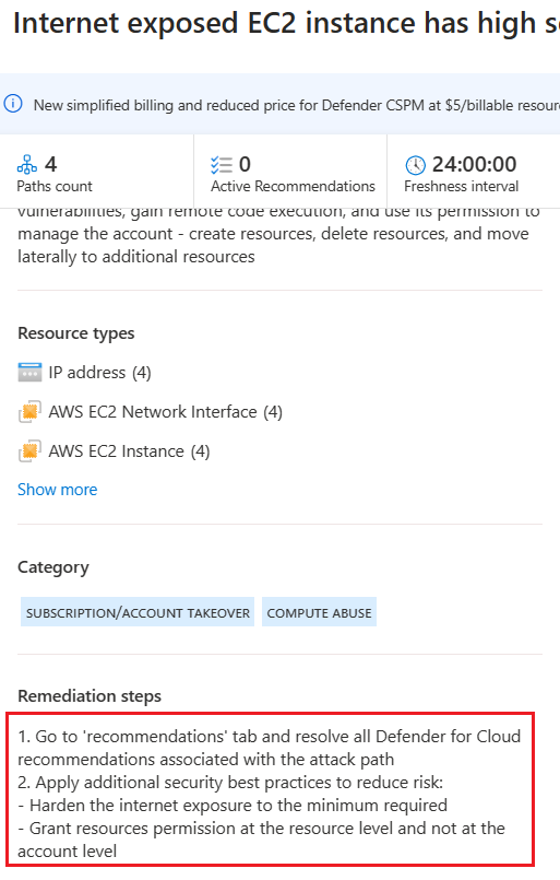 The Remediation steps suggest hardening the internet exposure to the minimum required, as shown below: