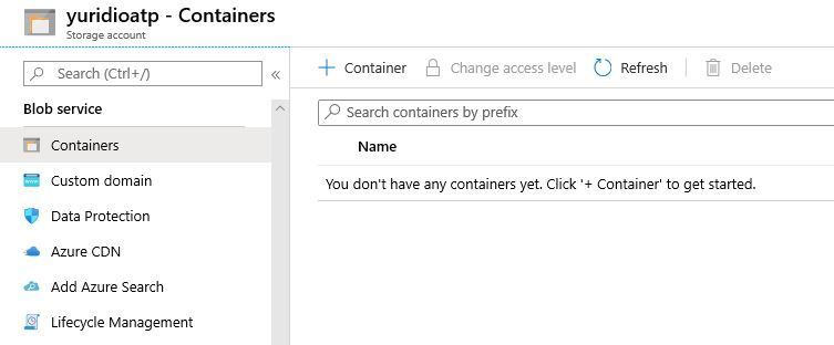 10. Open the storage account that you just created and under Blob Containers, click on the container that you created as shown below: