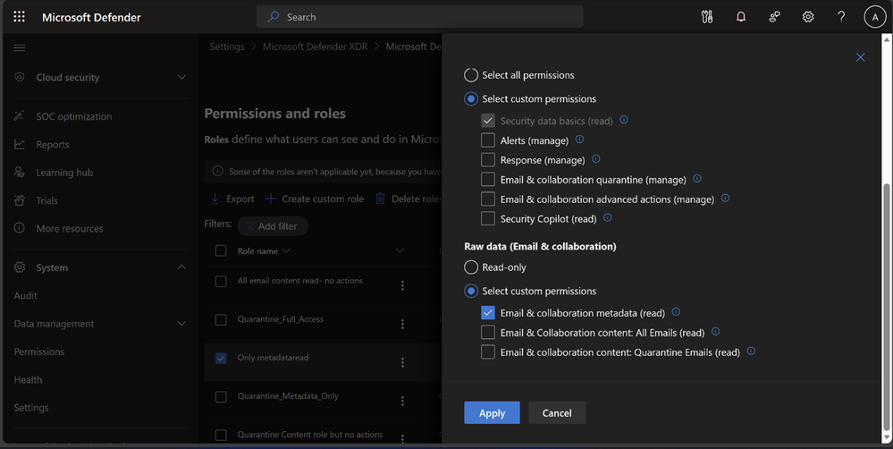 Important: After this update, Email & collaboration quarantine and Security data basics will no longer provide email content preview or download by themselves. To allow content visibility for quarantined messages, you must explicitly assign Emails in Quarantine. This change clarifies role boundaries and simplifies audits by making content access intentional and explicit. Read more here.