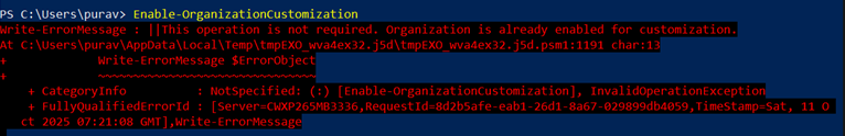 Figure 2 - Output if you re-run the Enable-OrganizationCustomization command