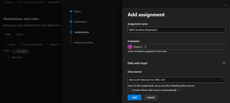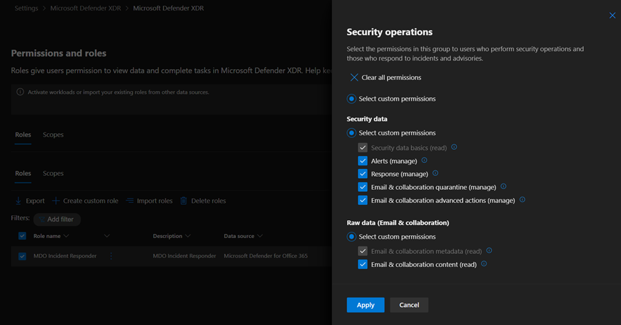 Figure 7 – Example least privilege role configuration for a Defender for Office 365 Incident Responder (image trimmed).