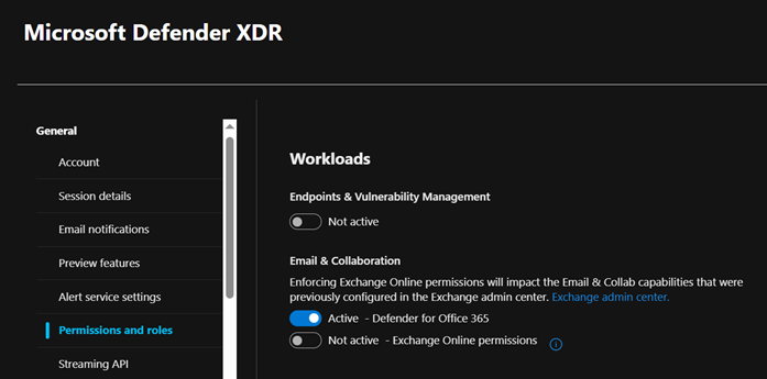 Figure 8 - Activating Microsoft Defender for Office 365 Workload in Defender XDR Roles.