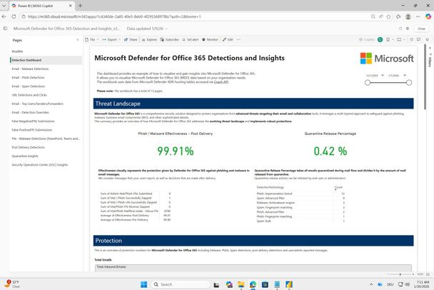 New: Power BI template file for Microsoft Defender for email and collaboration Detections and Insights