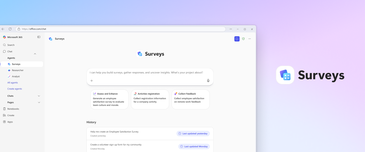 Now generally available: Surveys Agent in Microsoft 365 Copilot