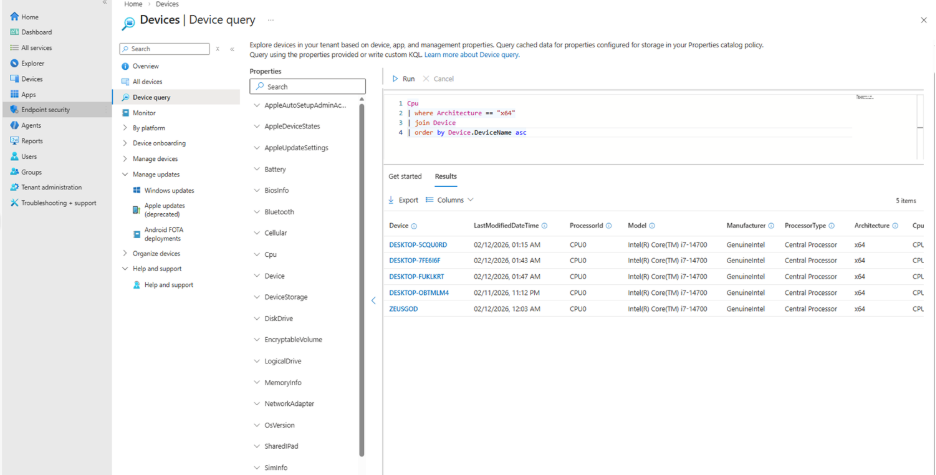 Zero Trust decisions depend on accurate, actionable data, and IT admins need precise queries to identify compliance gaps or missing configurations across their fleet. Advanced Analytics now includes the operator details in multiple device query (MDQ) results, (including join types such as new leftanti and rightsemi operators). This assists in finding the specific settings of missing devices and helps you run fleet-wide queries more accurately, especially if you are managing thousands of devices of all OS types.