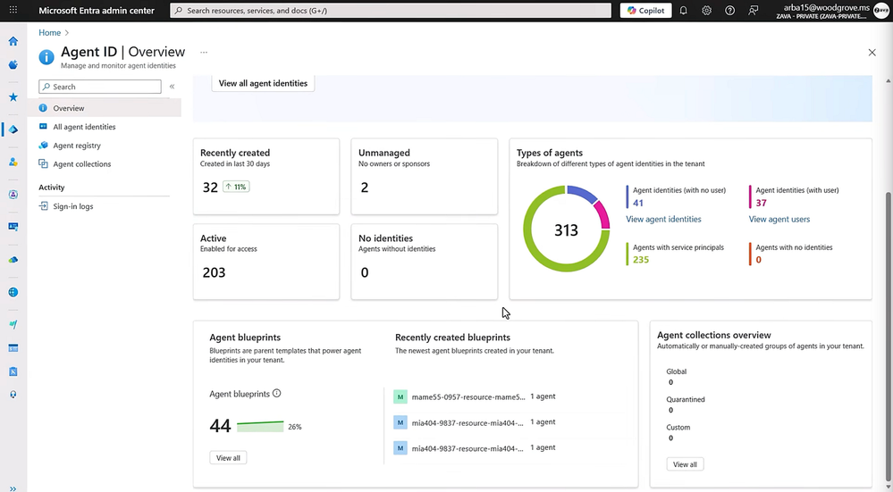 -As more AI agents become active in your environment, you need control over them and what they can access. That’s where Microsoft Entra Agent ID comes in. It lets you treat agents like you would treat human users with their own built-in identities. Agent ID lets you define permissions and extend new and existing protections to them. You stay in control across their entire life cycle, from initial creation to monitoring the day-to-day activities where we continuously check for risk and protect access to resources, to switching their ownership if their sponsors no longer around, and disabling them when they’re no longer needed. The good news is that you can use the same tools in Microsoft Entra that they use to manage human identities today. Let me show you. Here in the Entra Domain Center, you see a new type under Entra ID called Agent ID. In the overview, you’ll find a summary with key metrics. These insights highlight what you need to know about your agents.