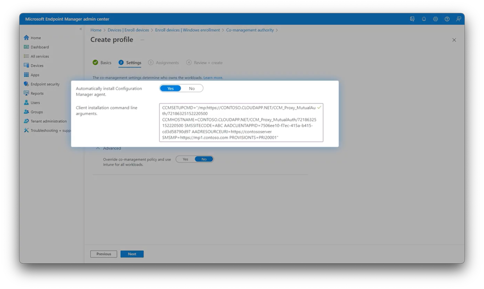 Set up enrollment to be co-managed when installing dozens of apps for new device provisioning.