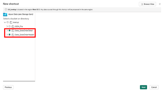 - Ensure the shortcut name “Sales_SalesOrderDetail” and “Sales_SalesOrderHeader” matches the delta folder name.