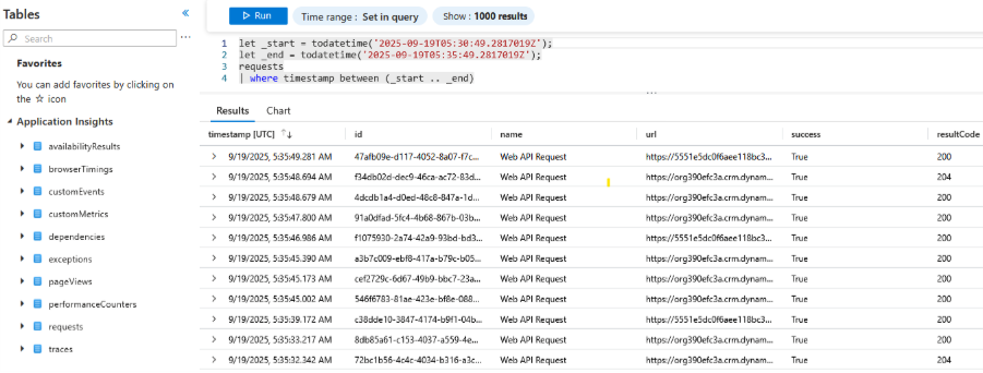 CONFIG = { "APPINSIGHTS_APP_ID": "<your-app-id>", "APPINSIGHTS_WORKSPACE_ID": "<your-workspace-id>", "STORAGE_ACCOUNT_URL": "<your-adls-url>", "CONTAINER_NAME": "<your-container>", "Dependencies_KQL": "dependencies \n limit 10000", "Exceptions_KQL": "exceptions \n limit 10000", "Pages_KQL": "pageViews \n limit 10000", "Requests_KQL": "requests \n limit 10000", "Traces_KQL": "traces \n limit 10000", "START_STOP_MINUTES": 5, "TIMER_MINUTES": 5, "CLIENT_ID": "<your-client-id>", "CLIENT_SECRET": "<your-client-secret>", "TENANT_ID": "<your-tenant-id>" }