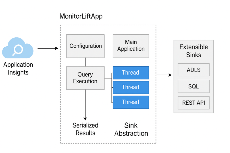 MonitorLiftApp is a modular Python application designed to export telemetry data from Azure Application Insights to custom sinks such as Azure Data Lake Storage Gen2 (ADLS). This solution is ideal when Event Hub integration is not feasible, providing a flexible, maintainable, and scalable alternative for organizations needing to move telemetry data for analytics, compliance, or integration scenarios.
