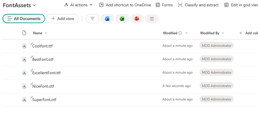 - In Office font lists, confirm your org fonts appear (if you registered an OfficeFontLibrary).