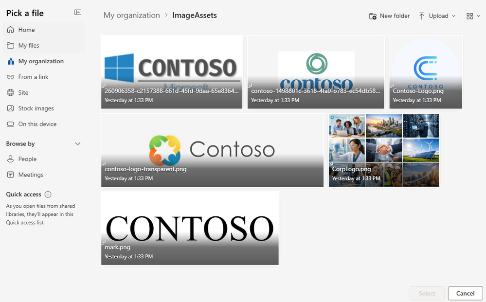 - For image libraries, confirm approved brand images appear in supported pickers; if you enabled -CopilotSearchable, confirm images are discoverable as expected.