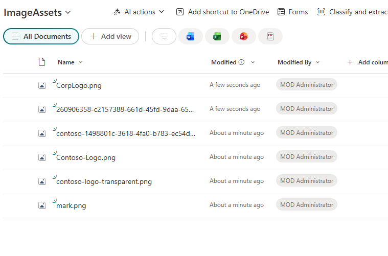- If assets don’t appear in Office apps, wait for propagation (up to 24 hours) and re-check that the library was registered successfully.